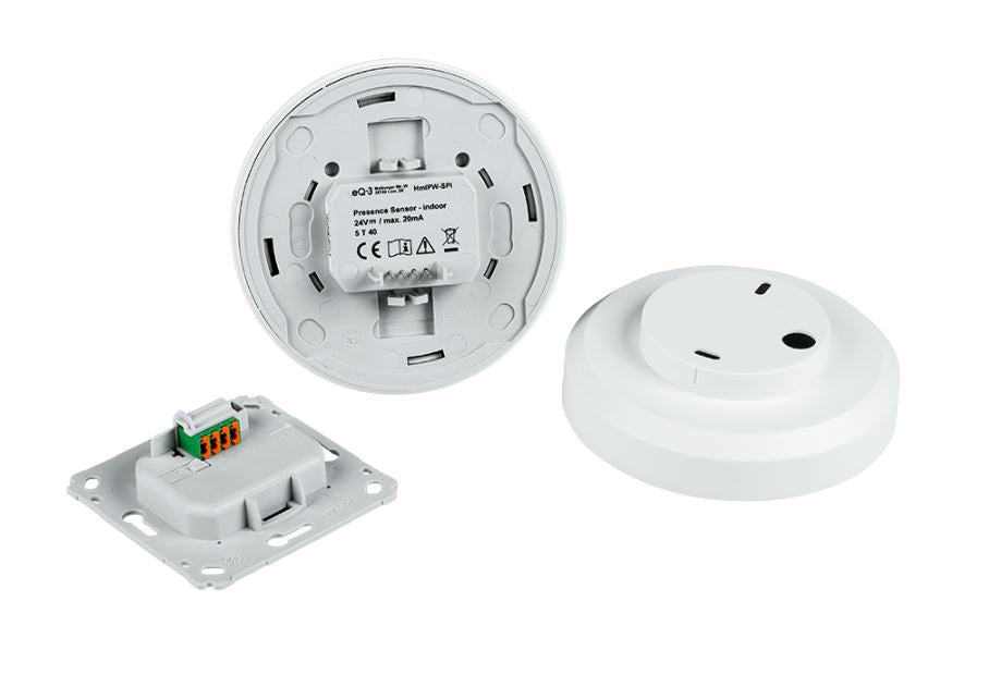 Wenn der Präsenzmelder an der Decke montiert ist, zeichnet er selbst kleinste Bewegungen wie das Tippen auf einer Tastatur in einem Radius von bis zu 3,5 m und einem Erfassungswinkel von ca. 105 ° auf. Gröbere Bewegungen werden in einem Radius bis 7 m erfasst. Der integrierte Dämmerungssensor erkennt auch Helligkeitsänderungen. Dies bedeutet, dass die Beleuchtung automatisch eingeschaltet werden kann, wenn eine Bewegung erkannt wird. Der Präsenzmelder eignet sich auch als empfindlicher Sensor zur Alarmerkennung.